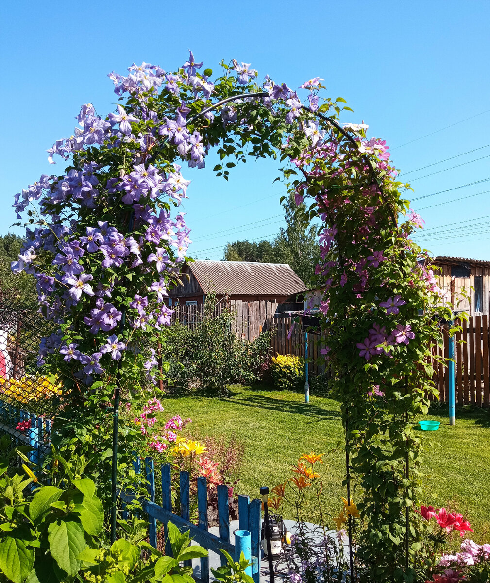 - Идеально: возле арки, забора, дома или беседки.