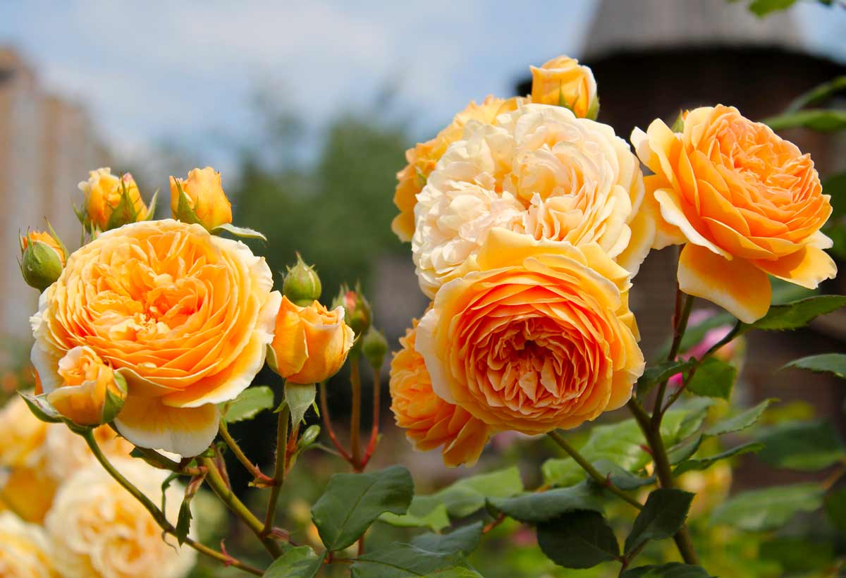 Его цветы настолько похожи на пион, что иногда только характерная форма ярко зеленых листьев помогает отличить сорт розы «Peony Magic» от других растений.